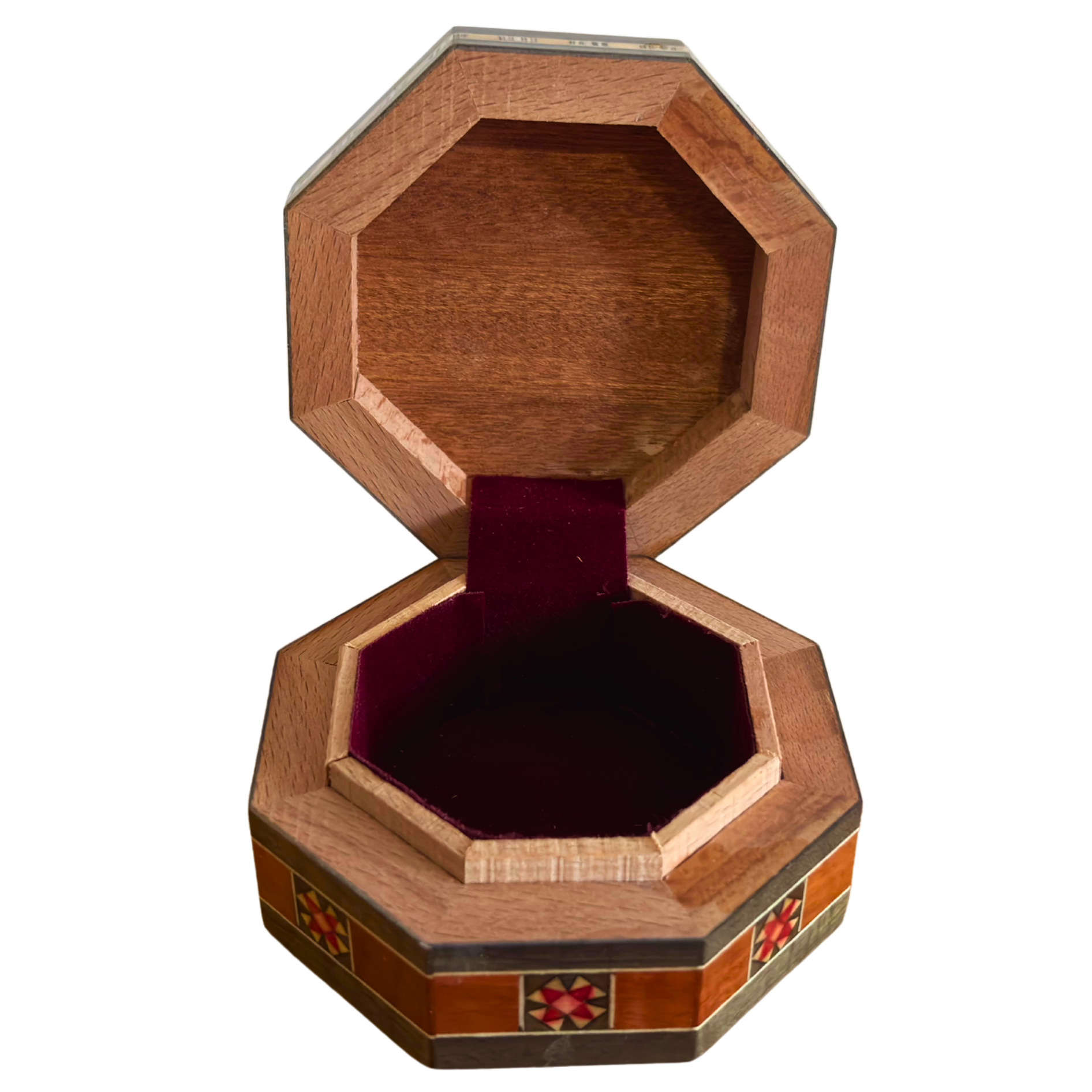 mini boîte octogonale en mosaïque, boîte damascène faite main, boîte à bijoux en nacre, souvenir du Moyen-Orient, boîte en bois de noyer, idée cadeau unique, boîte en bois artisanale, art mosaïque culturel, boîte de Damas, boîte syrienne, cadeau pour elle, cadeau pour lui